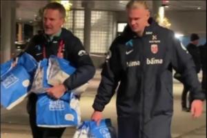 赛后哈兰德被拍到从球场外拎着几大袋芝士汉堡,数量大约有60-70个,回到更衣室准备和队友们庆祝胜利。