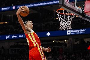展翅高飞!鹰王杰伦·约翰逊突破迎着迪亚巴特单臂劈扣